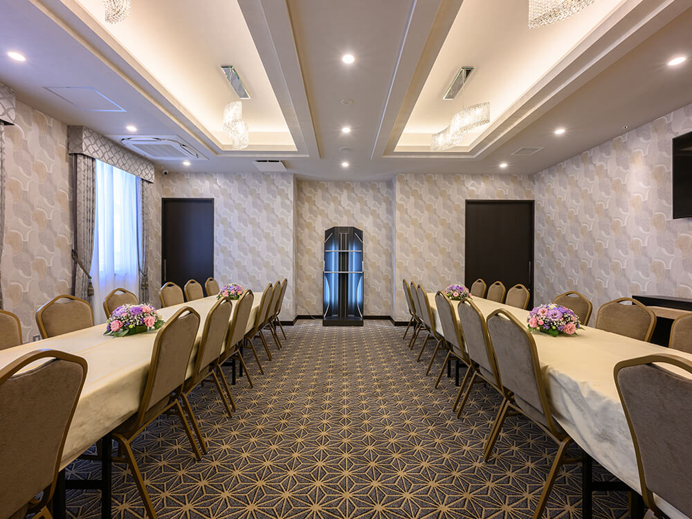 | 対応人数 | 大式場:着席数60名 最大対応人数150名 小式場:着席数15名 最大対応人数30名 ※全館利用最大200名対応 |
